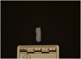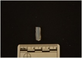 | Description / विवरण | Chalcedony blade fragment has two ridges on dorsal side, striking platform, broken from distal end and use-wear marks on edges. |