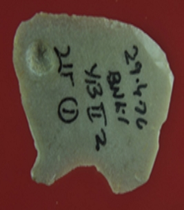 | Description / विवरण | Trench YB 2, Qdt 2, pit 1, layer 1 It is a broken chert blade. Edges are damaged. Surface is smooth and thickness in the middle. Appearance is greyish. |