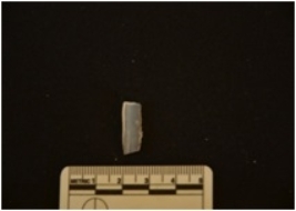 | Description / विवरण | Chalcedony blade fragment has two ridges on dorsal side, striking platform, broken from distal end and use-wear marks on edges. |