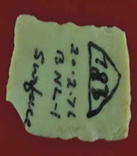 | Description / विवरण | Trench Surface It s a chert blade in rectangular shape. Little bit thick in the middle and edges are rough. Surface is smooth and appearance is off white. |