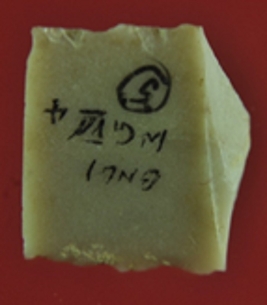 | Description / विवरण | Trench WG 7, Qdt 4, layer 5 It is a broken chert blade. Edges are rough. Surface is smooth and thickness in the middle. Appearance is creamish. |