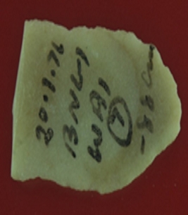 | Description / विवरण | Trench WA 1, layer 7, depth 88 cms It s a chert blade in rectangular shape but one side is broder than other. Little bit thick in the middle and edges are rough. Surface is smooth and appearance is off white. |