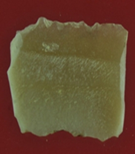 | Description / विवरण | Trench ZO 3, layer 4 It s a chert blade in rectangular shape. Little bit thick in the middle and edges are rough. Surface is smooth and appearance is off white. |