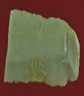 | Description / विवरण | Trench WB 2, depth 5 to 10 cms It s a chert blade in rectangular shape but one side is broder than other. Little bit thick in the middle and edges are rough. Surface is smooth and appearance is off white. |