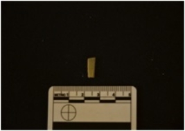 | Description / विवरण | chalcedony blade fragment has two ridges on dorsal side broken from both ends, use-wear marks on edges and heated. |