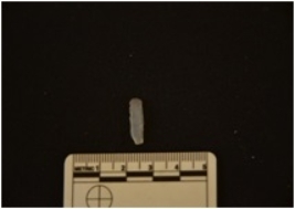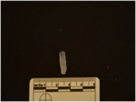 | Description / विवरण | Chalcedony blade has two ridges on dorsal side, striking platform bulb on ventral side, retouches and use-wear on edges. |