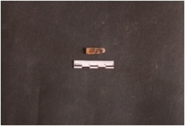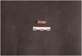 | Description / विवरण | Chet blade fragment has two ridges on dorsal side, striking platform, bulb on ventral side, broken from distal end use-wear marks on edges and trapezoidal cross-section. |