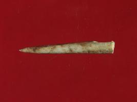 | Description / विवरण | It s a bone point. One end has sharp tip but other is damaged. Surface is smooth with brownish appearance. |