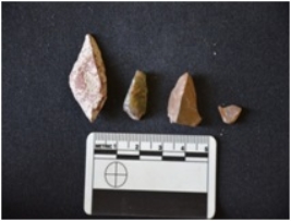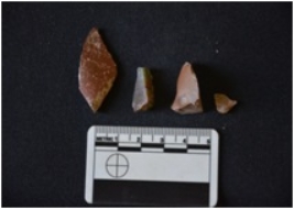 | Description / विवरण | Chalcedony blade has two ridges on dorsal side, striking platform, diffused bulb on ventral side, trapezoidal cross-section and use-wear marks on edges. |