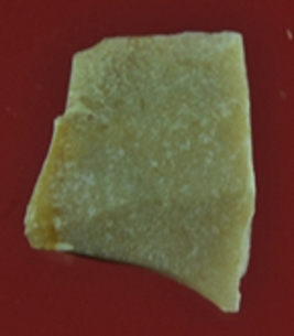 | Description / विवरण | It s a broken chert blade. Edges are rough and one side is broken. Surface is smooth and thickness in the middle. Appearance is brownish. Ends are broken. |