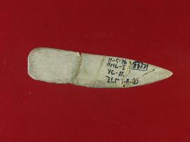 | Description / विवरण | Trench YC 2, Qdt 1, pit 1 It s a bone point. One end is broader than other. Appearance is creamish. |