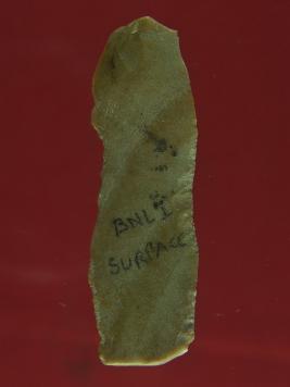 | Description / विवरण | It is a broken chert blade. Edges are rough. Surface is smooth and thickness in the middle. Appearance is light brown. |