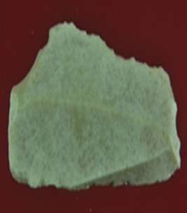| Description / विवरण | It s a chert blade in rectangular shape. Little bit thick in the middle and edges are rough. Surface is smooth and appearance is off white. |