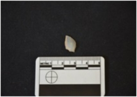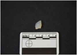 | Description / विवरण | Chalcedony utilized flake has a ridge on dorsal side, striking platform, bulb on ventral side and use-wear marks on working edge. |