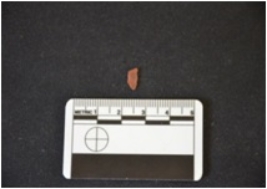 | Description / विवरण | Fragment of chert blade has a midridge on dorsal side, striking platform, bulb on ventral side, use-wear marks on cutting edges, broken from distal end and triangular cross-section. |