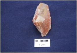 | Description / विवरण | An Utilized Flake on Chert, prepared platform along proximal end, diffused bulb on ventral side, use-wear marks along the cutting edge. |