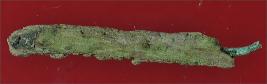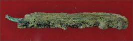 | Description / विवरण | Trench WB 4, layer 1, depth 10 cm It s a broken nail of copper. Both ends are broken and one side is making a sharp tip but little curved. Surface is rough and deposition of hard patina. |