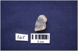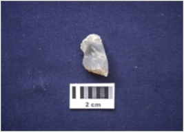 | Description / विवरण | Chalcedony 1. Fragment of a Flake with prepared platform, diffused bulb on ventral side. |