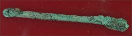 | Description / विवरण | Trench WG 2, layer 16 It s a broken nail of copper. Shape is slender, surface is rough and deposition of hard patina. One end is little curved. |