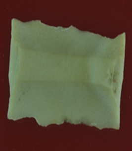| Description / विवरण | Trench YR 2, layer 1, depth 10 cm It s a broken chert blade. Edges are rough. Surface is smooth and thickness in the middle. Appearance is off white. |