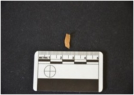 | Description / विवरण | Chert balde fragment has two ridges on dorsal side, broken from proximal end, use-wear marks on cutting edges and trapezoidal cross-section. |