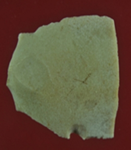 | Description / विवरण | Trench WJ 1, depth 0 to 6 cms It s a broken chert blade. Edges are rough, surface is smooth and thickness in the middle. Appearance is brownish. Ends are broken. |