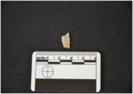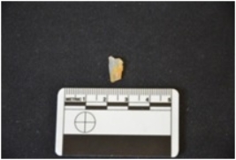| Description / विवरण | Fragment of chalcedony blade has two ridges on dorsal side, broken from both ends, use-wear marks on cutting edges and trapezoidal cross-section. |