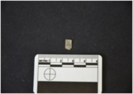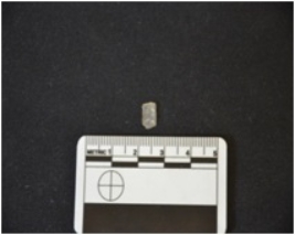 | Description / विवरण | Fragment of chalcedony blade has two ridges on dorsal side, broken from both ends and use-wear marks on cutting edges. |