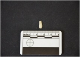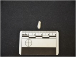 | Description / विवरण | Fragment of chalcedony blade has three ridges on dorsal side, broken from both ends, use-wear marks on cutting edges and trapezoidal cross-section. |