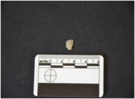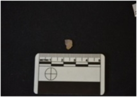 | Description / विवरण | Fragment of chalcedony blade has two ridges on dorsal side, striking platform, diffused bulb on ventral side, broken from distal end, use-wear marks on cutting edge and trapezoidal cross-section. |