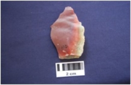 | Description / विवरण | Utilized Flake, made on Chert, prepared platform along the proximal end, diffused bulb on ventral side, use-wear marks along the cutting edge. |