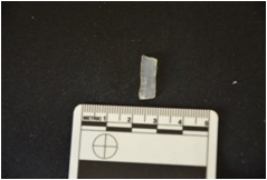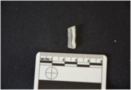 | Description / विवरण | Parallel sided blade made on chalcedony, use wear marks on both edges, broken at the distal end |