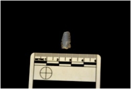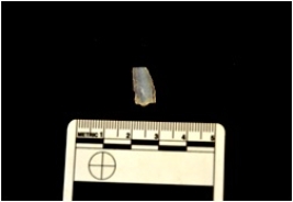 | Description / विवरण | blade made on chalcedony, broken at the distal end, use wear marks along both edges, bulb of percusion visible |