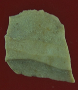 | Description / विवरण | It s a chert blade in rectangular shape. Little bit thick in the middle and edges are rough. Surface is smooth and appearance is off white. |