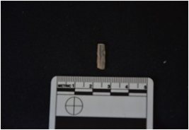 | Description / विवरण | Blade made on chalcedony, use wear marks along both edges, broken at both ends |