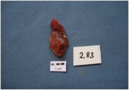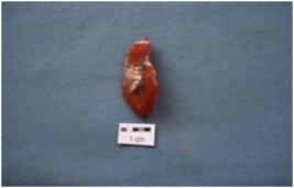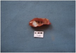 | Description / विवरण | Blade, made on Chert, prepared platform, prominent bulb on ventral side, partly retouched on dorsal side along the right lateral edge. |