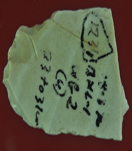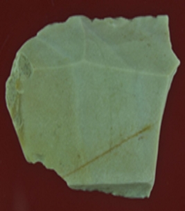 | Description / विवरण | Trench WG 2, layer 4, depth 31 cm It s a broken chert blade. Edges are rough. Surface is smooth and thickness in the middle. Appearance is creamish. |