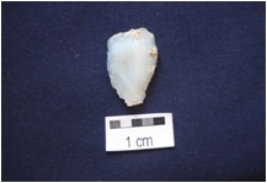 | Description / विवरण | Fragment of a Blade, made on Chalcedony, prepared platform along proximal end, diffused bulb on ventral side, use-wear marks along right lateral edge on ventral side. |