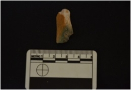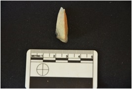 | Description / विवरण | Lithic debitage, byproduct of tool manufacture, cortex visible on dorsal side |