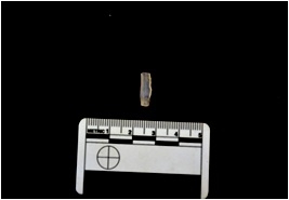 | Description / विवरण | Blade made on chalcedony, use wear marks seen on both edges |