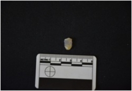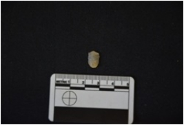 | Description / विवरण | Fragment of a blade made on chalcedony, broken at distal end, use wear marks seen, bulb of percussion present |