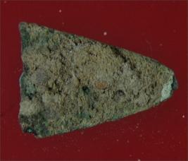 | Description / विवरण | Trench ZH 4, pit 1, depth 495 cms It s a broken arrow head made of copper. Shape is as usual with deposition of hard patina. Surface is rough. |
