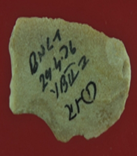 | Description / विवरण | Trench YB 2, Qdt 2, pit 1, layer 1 It s a chert blade in uneven shape. Little bit thick in the middle and edges are rough. Surface is smooth and appearance is off white. |