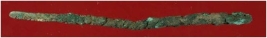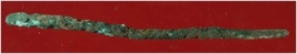 | Description / विवरण | Trench XAV 19, Qdt 2, layer 1, depth 85 cms It is a broken antimony rod made of copper. Patina is present. Colour is copper green. |