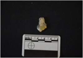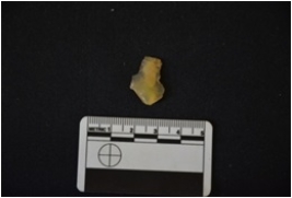 | Description / विवरण | Flake struck on chalcedony, use wear marks on both cutting edge |