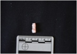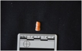 | Description / विवरण | Agate blade fragment heated has crested guided ridge on dorsal side, broken from both ends, triangular cross-section and use-wear marks on cutting edges. |