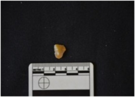 | Description / विवरण | Chalcedony heated blade fragment has a ridge on dorsal side, striking platform diffused bulb on ventral side, broken from distal end and use-wear marks along at one edge. |