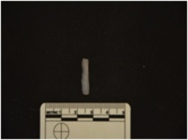 | Description / विवरण | Chalcedony blade has a midridge on dorsal side, striking platform, diffused bulb on ventral side, use-wear marks on cutting edges and triangular cross-section. |