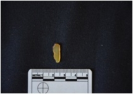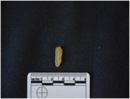 | Description / विवरण | Chalcedony heated blade has two ridges on dorsal side, striking platform, bulb on ventral side and use-wear marks on both edges. |
