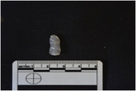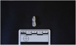 | Description / विवरण | Chalcedony blade has crested guided ridge on dorsal side, striking platform, diffused bulb on ventral side, triangular cross-section and use-wear marks on cutting edges. |